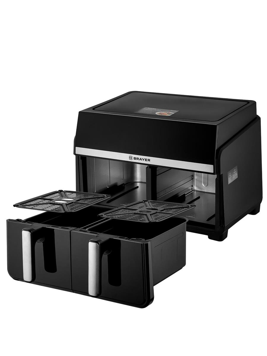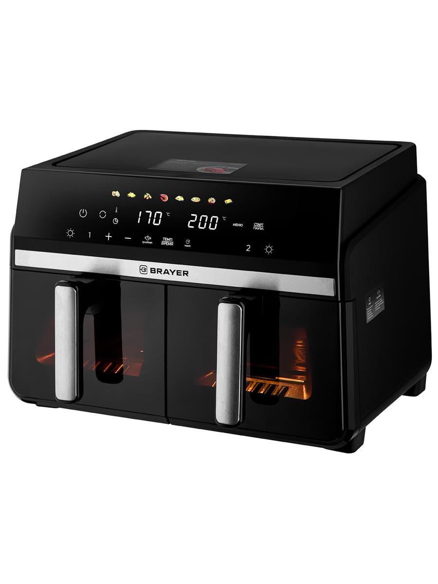 Объем каждой чаши 5 л. 8 программ: мясо, фри, голень, морепродукты, рыба, пицца, кекс, сушка