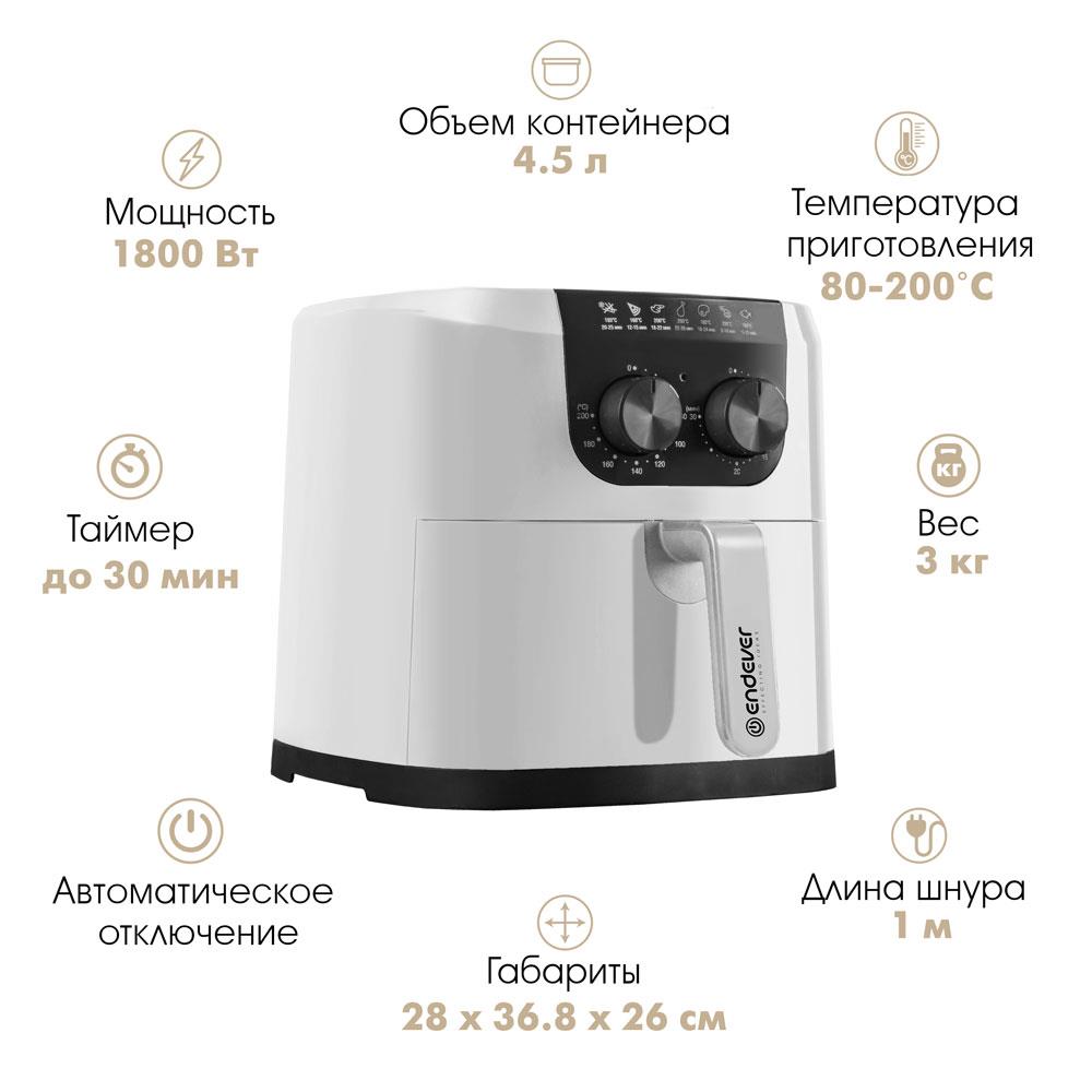Аэрогриль Endever Skyline AF-126, белый (1800 Вт /4,5 л ) - Интернет-магазин ОЛИМП: бытовая техника, электроника, товары для дома и др.