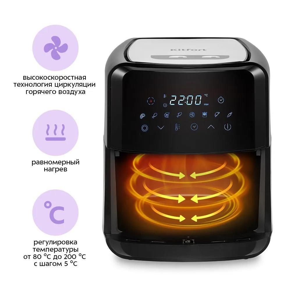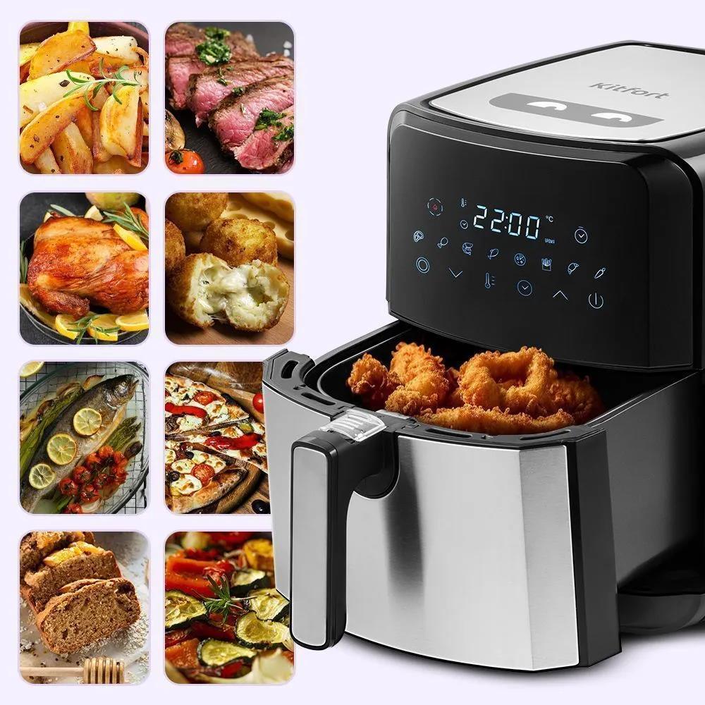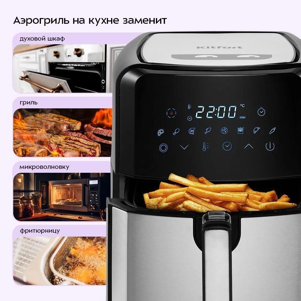 Аэрогриль Kitfort КТ-2239 1700Вт черный/серебристый (1700 Вт /4,5 л ) - Интернет-магазин ОЛИМП: бытовая техника, электроника, товары для дома и др.