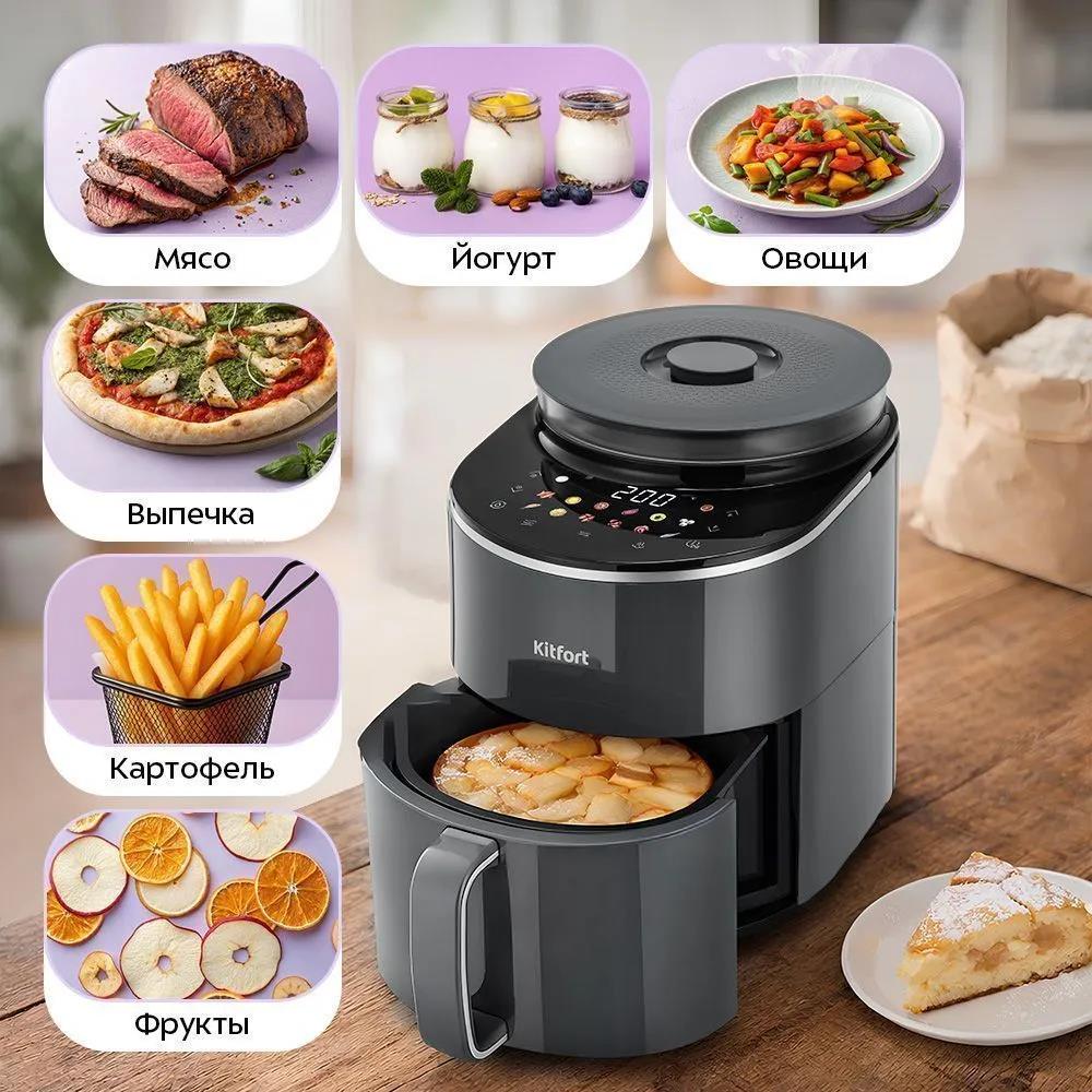 Аэрогриль Kitfort КТ-8155 4.5л 1500Вт серый (1500 Вт /4,5 л ) - Интернет-магазин ОЛИМП: бытовая техника, электроника, товары для дома и др.