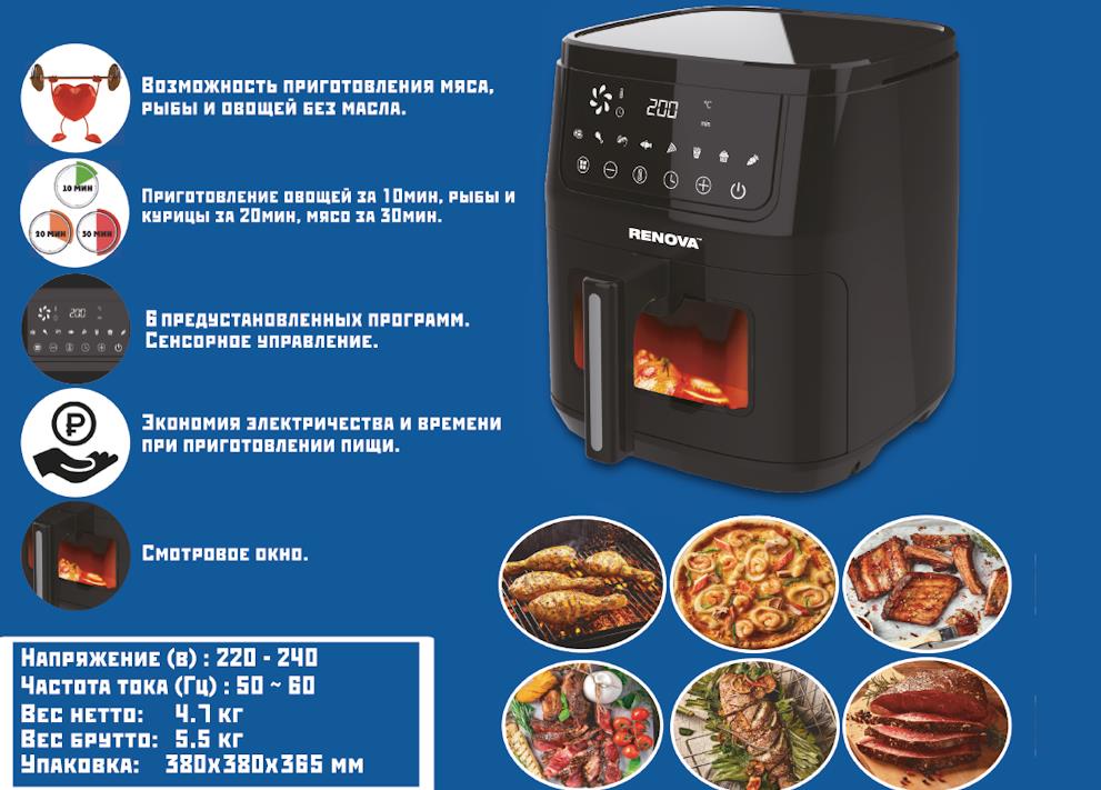Аэрогриль Renova AF7-DTB1 (1600 Вт /7 л ) - Интернет-магазин ОЛИМП: бытовая техника, электроника, товары для дома и др.