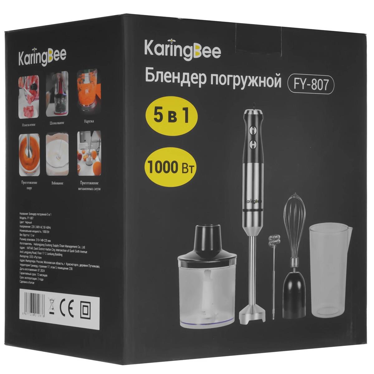 Блендер KaringBee FY-807 (погружной/1000 Вт/серебристый, черный)