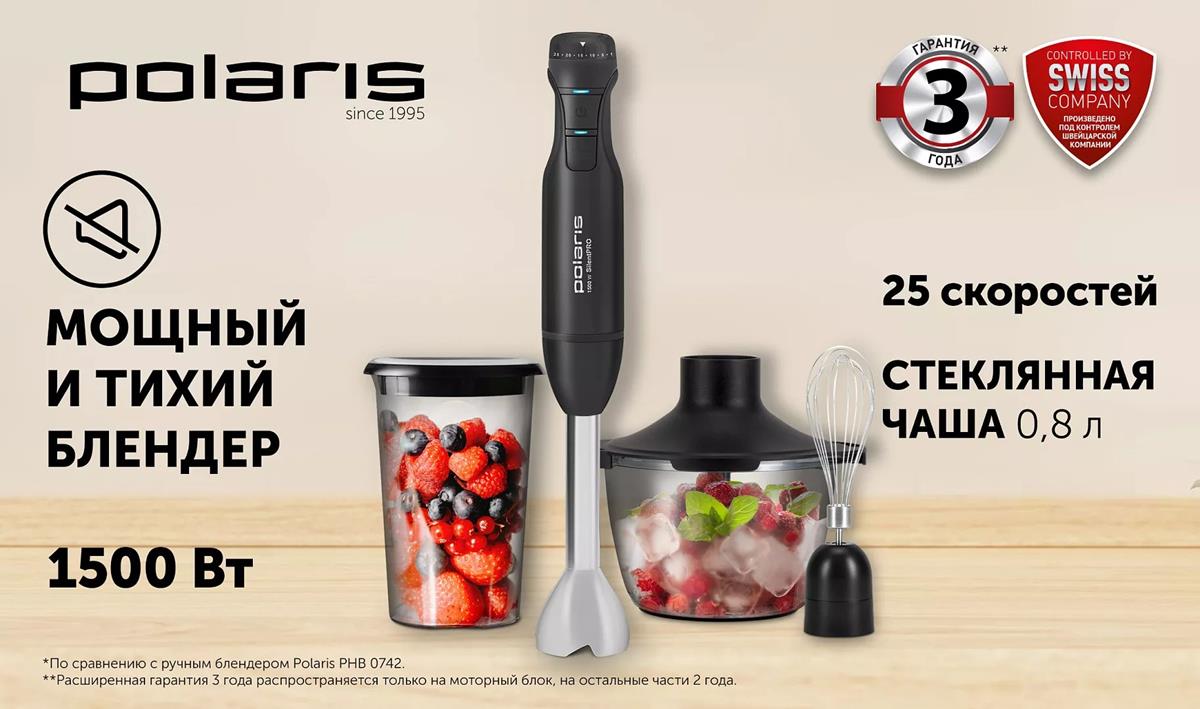 Блендер Polaris PHB 1510GL Silent (погружной/1500 Вт/черный)