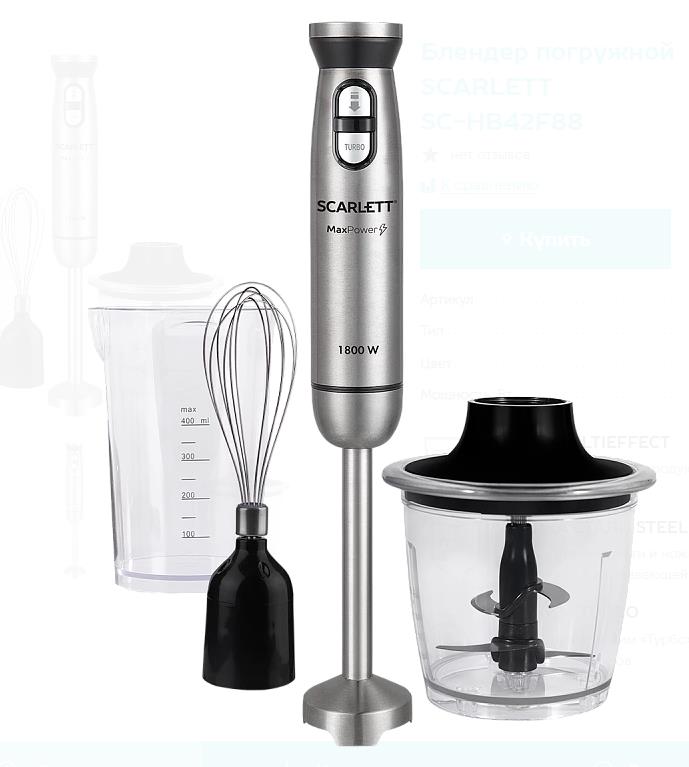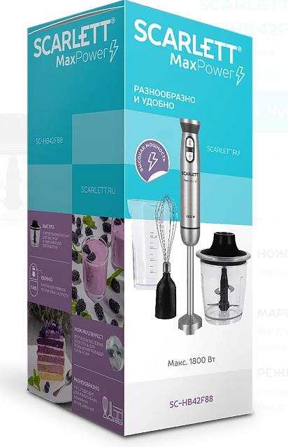 Блендер Scarlett SC-HB42F88 (сталь) (погружной/1800 Вт/серебристый, черный) - Интернет-магазин ОЛИМП: бытовая техника, электроника, товары для дома и др.
