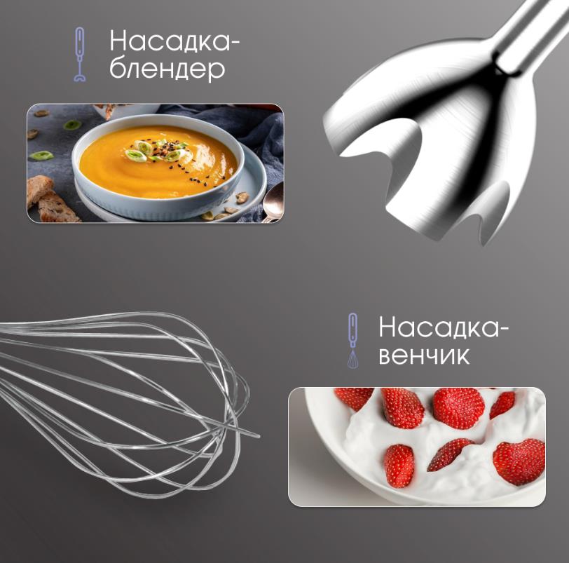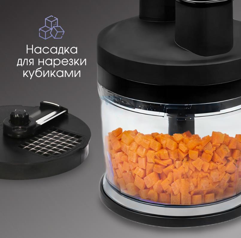турборежим, насадка блендер, капучинатор, насадка для нарезки кубиками, терка, насадка шинковка