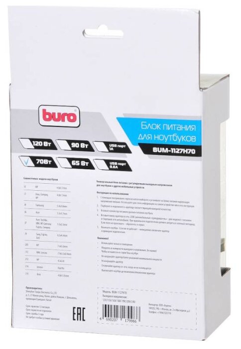 Блок питания Buro BUM-1127H70 (Универсальный 70 Вт ) - Интернет-магазин ОЛИМП: бытовая техника, электроника, товары для дома и др.
