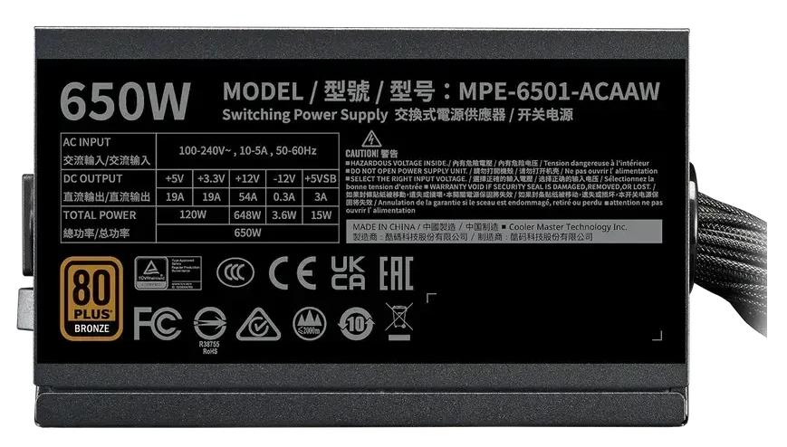 Блок питания Cooler Master MWE Bronze V3 (MPE-6501-ACAAW-3BEU) (650 Вт )