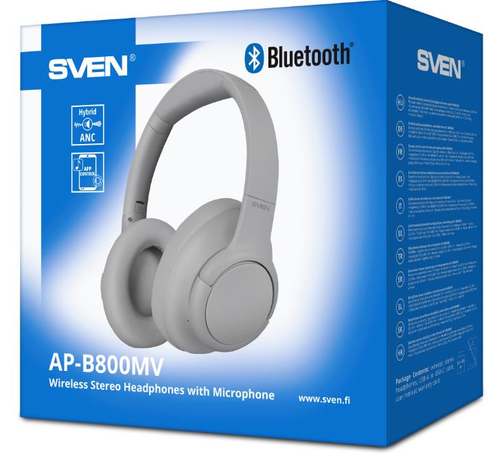 Bluetooth-гарнитура/наушники Sven AP-B800MV (Bluetooth, hybrid ANC, APP, 4 mics 500mAh) (серый) - Интернет-магазин ОЛИМП: бытовая техника, электроника, товары для дома и др.