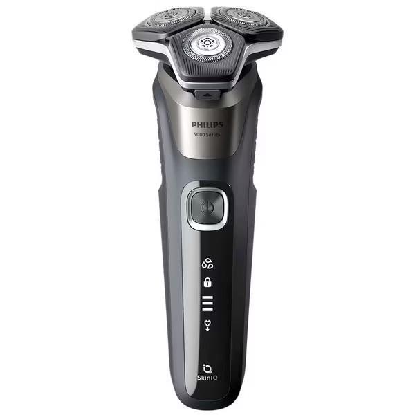 Электробритва Philips S5887/10 с технологией SkinIQ предназначена для сухого и влажного бритья. Конструкция устройства включает в себя три плавающие бритвенные головки, которые повторяют контуры лица. Модель оснащена пластиковым корпусом с прорезиненным покрытием, светодиодным дисплеем, индикаторами включения, зарядки и разрядки аккумулятора. Допустима промывка ножей под водой. За электропитание отвечает встроенный литиево-ионный аккумулятор, полного заряда которого достаточно для 60 мин беспрерывной работы. Время зарядки составляет 1 ч. Модель оснащена пластиковым корпусом с прорезиненным покрытием, индикаторами включения, зарядки и разрядки аккумулятора, необходимости очистки. Полный комплект включает в себя футляр для хранения и зарядное устройство.