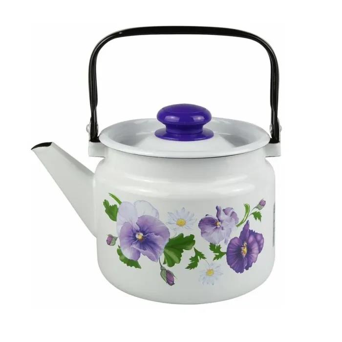 Чайник ЛЫСЬВА 27104П2 Анютины глазки эмал (2, л л /рисунок, белый) - Интернет-магазин ОЛИМП: бытовая техника, электроника, товары для дома и др.