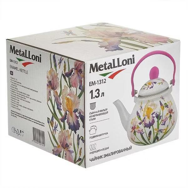 Чайник METALLONI EM-1312 с фильтром (1,3, л л /цветы, белый)