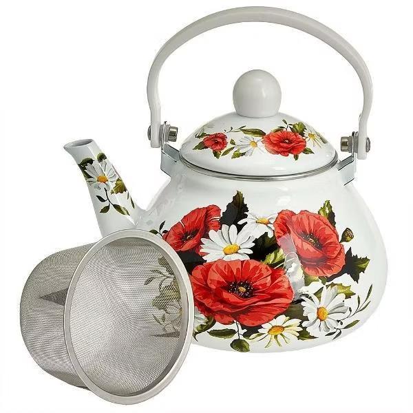 Чайник METALLONI EM-1330 с фильтром (1,3, л л /цветы, белый)