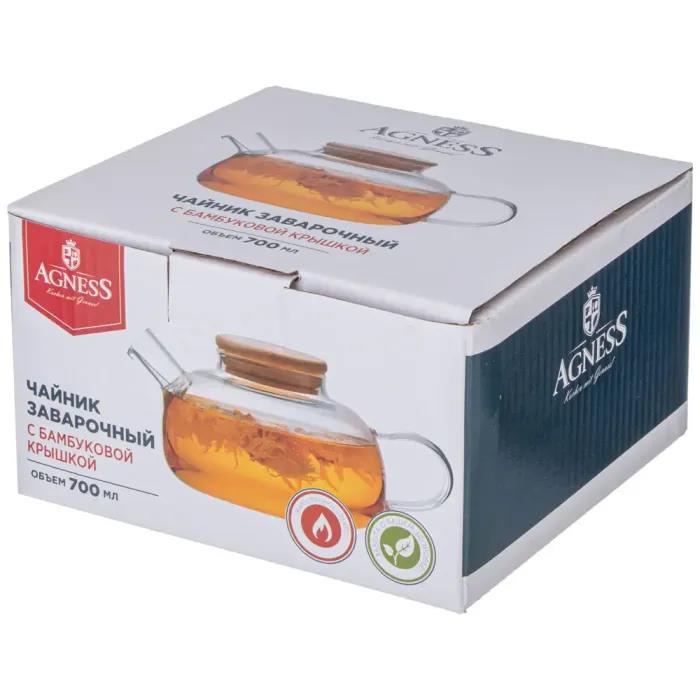 Чайник заварочный AGNESS 887-253 с бамбуковой крышкой (/0,7 л ) - Интернет-магазин ОЛИМП: бытовая техника, электроника, товары для дома и др.