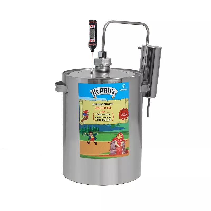 Дистиллятор ПЕРВАЧ Эконом 12Т предназначен для производства экологически чистых напитков в домашних условиях. Корпус дистиллятора изготовлен из пищевой нержавеющей стали. Прибор имеет проточный тип охлаждения и оснащен клапаном сброса избыточного давления.