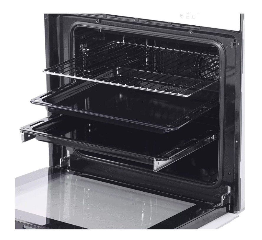 Haier HOX-P06HGW — это встраиваемый электрический духовой шкаф в белом цвете с серебристой фурнитурой. Модель отличается увеличенным внутренним объемом 76 литров, что позволяет готовить крупные блюда или использовать несколько уровней одновременно.