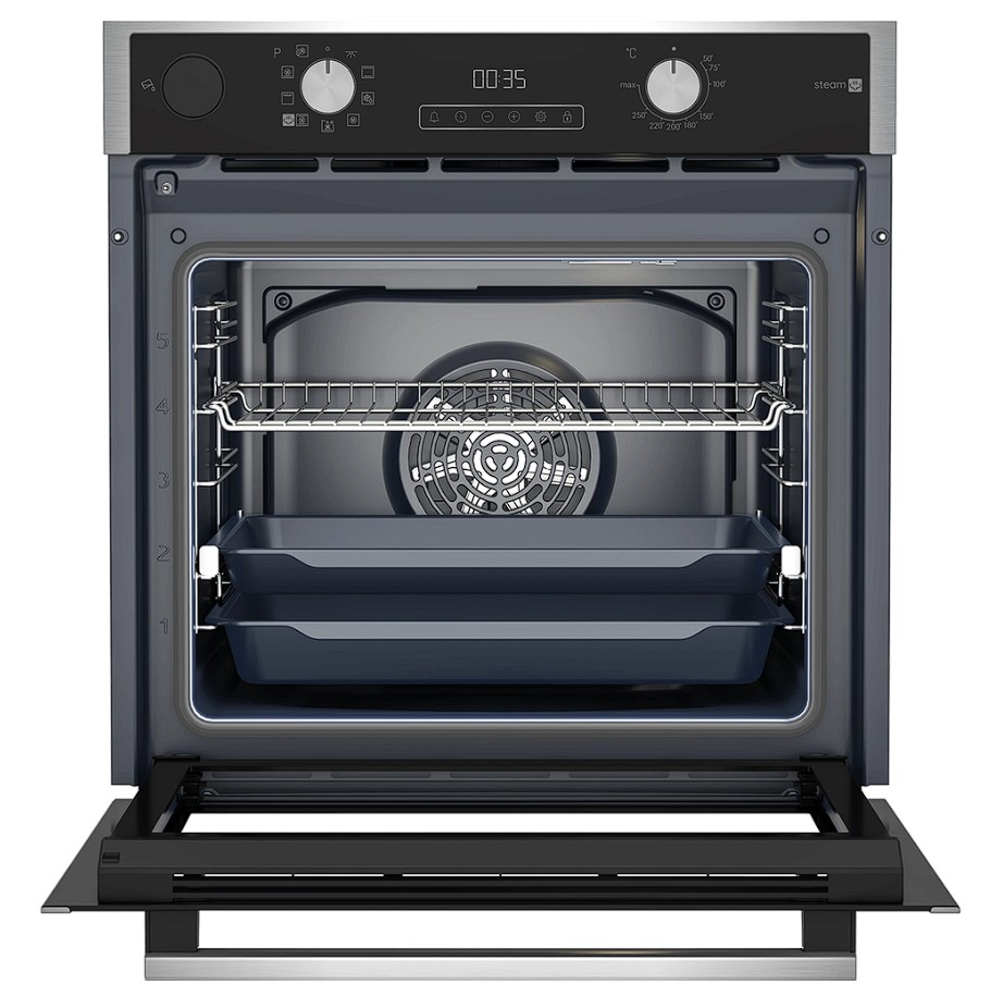 Встраиваемый электрический духовой шкаф Hotpoint FE9 S831 JSH IX создан для современной домашней кухни, где процесс приготовления пищи превращается в удовольствие. Это 9 программ приготовления, в том числе гриль, конвекция и приготовление с паром. Пар сделает горячие блюда нежнее и сочнее, а выпечке подарит глянцевую, хрустящую корочку. Большой объем — 72 литра — позволяет готовить даже очень большие порции. Например, запекать индейку или приготовить сразу несколько коржей для торта.