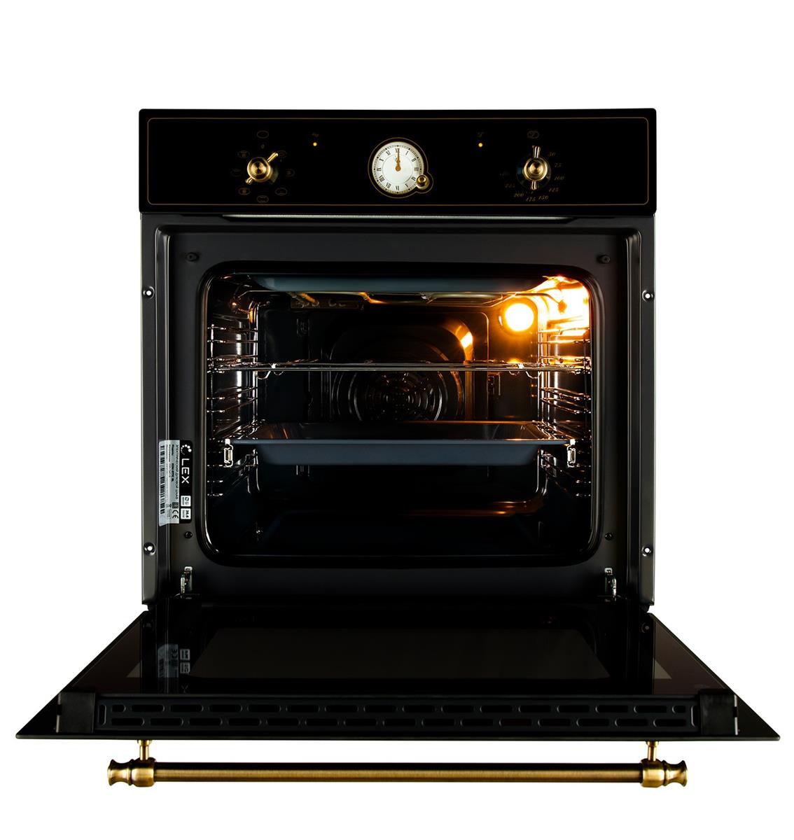 Встраиваемый электрический духовой шкаф LEX EDM 077 C с механическим управлением объединяет красоту ретро эстетики и современный функционал. Аналоговый таймер, стильные ручки под старину и двойное стекло ретро формы дополняют образ. Духовка оснащена 7 режимами работы, включая традиционный и размораживание. Технология Confit позволяет использовать томление при низкой температуре.