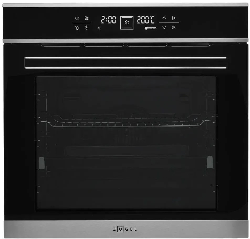 Электрический духовой шкаф ZUGEL ZOE601X сочетает в себе широкие функциональные возможности. Встроенные нагревательные элементы и термостат предусматривают выбор температуры до 250 °С, позволяя качественно готовить блюда из различных продуктов. Данная модель оснащена 9 режимами приготовления. Встроенный вентилятор охлаждения защищает прилегающую мебель от чрезмерного нагрева. Среди других особенностей модели отмечается откидная дверца с тройным остеклением и удобной ручкой. В комплекте с духовым шкафом ZUGEL ZOE601X поставляются противень, решетка и термощуп.