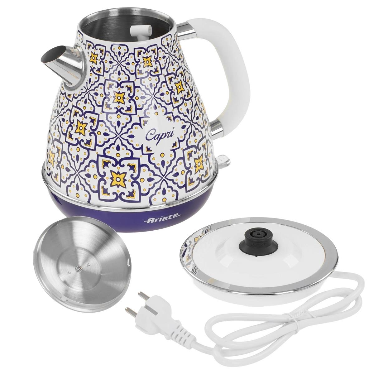 Электрический чайник Ariete 2869/0C Capri (2200 Вт/1,7 л /металл, пластик/синий, белый, рисунок) - Интернет-магазин ОЛИМП: бытовая техника, электроника, товары для дома и др.