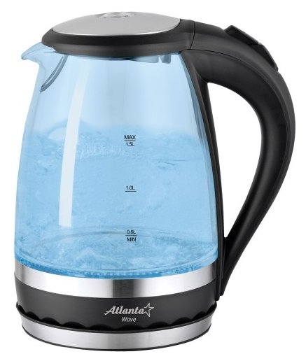 Электрический чайник Atlanta ATH-2463 (2000 Вт/1,5 л /стекло, пластик/прозрачный, черный) - Интернет-магазин ОЛИМП: бытовая техника, электроника, товары для дома и др.