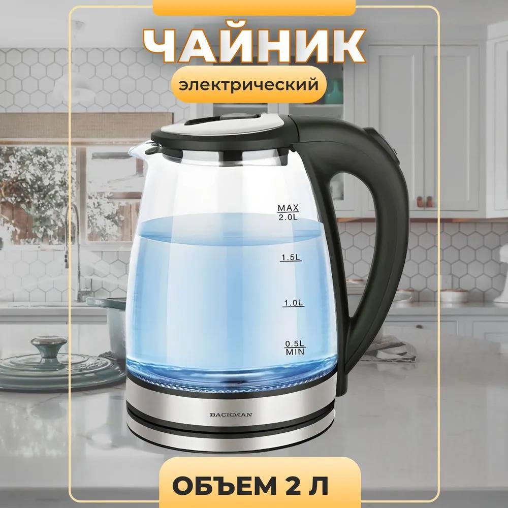 Электрический чайник BACKMAN BM-70005 (2200 Вт/2 л /стекло, пластик/прозрачный, серебристый) - Интернет-магазин ОЛИМП: бытовая техника, электроника, товары для дома и др.