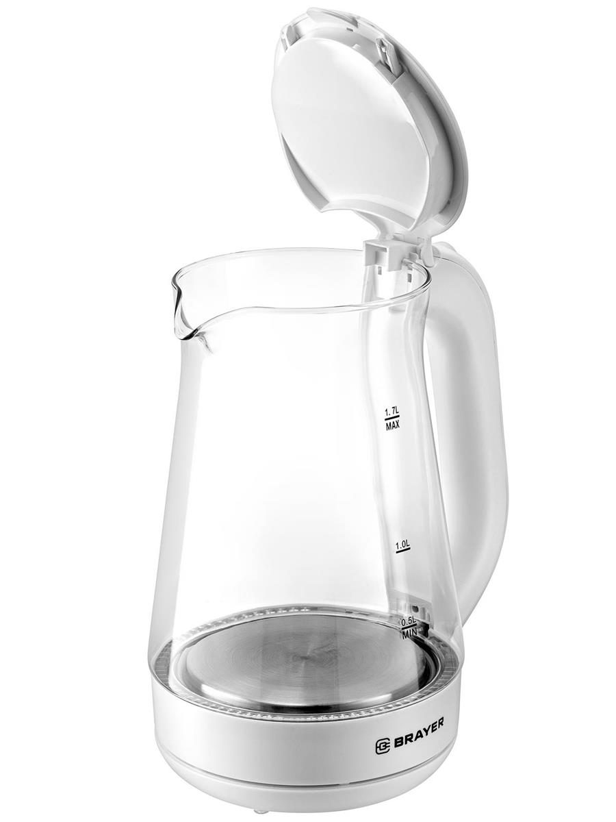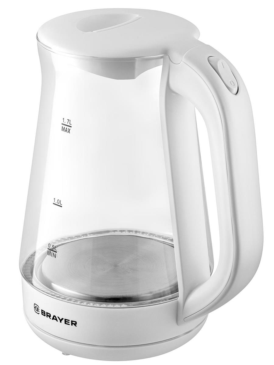 Электрический чайник Brayer BR6112WH (2200 Вт/1,7 л /стекло/прозрачный, белый)