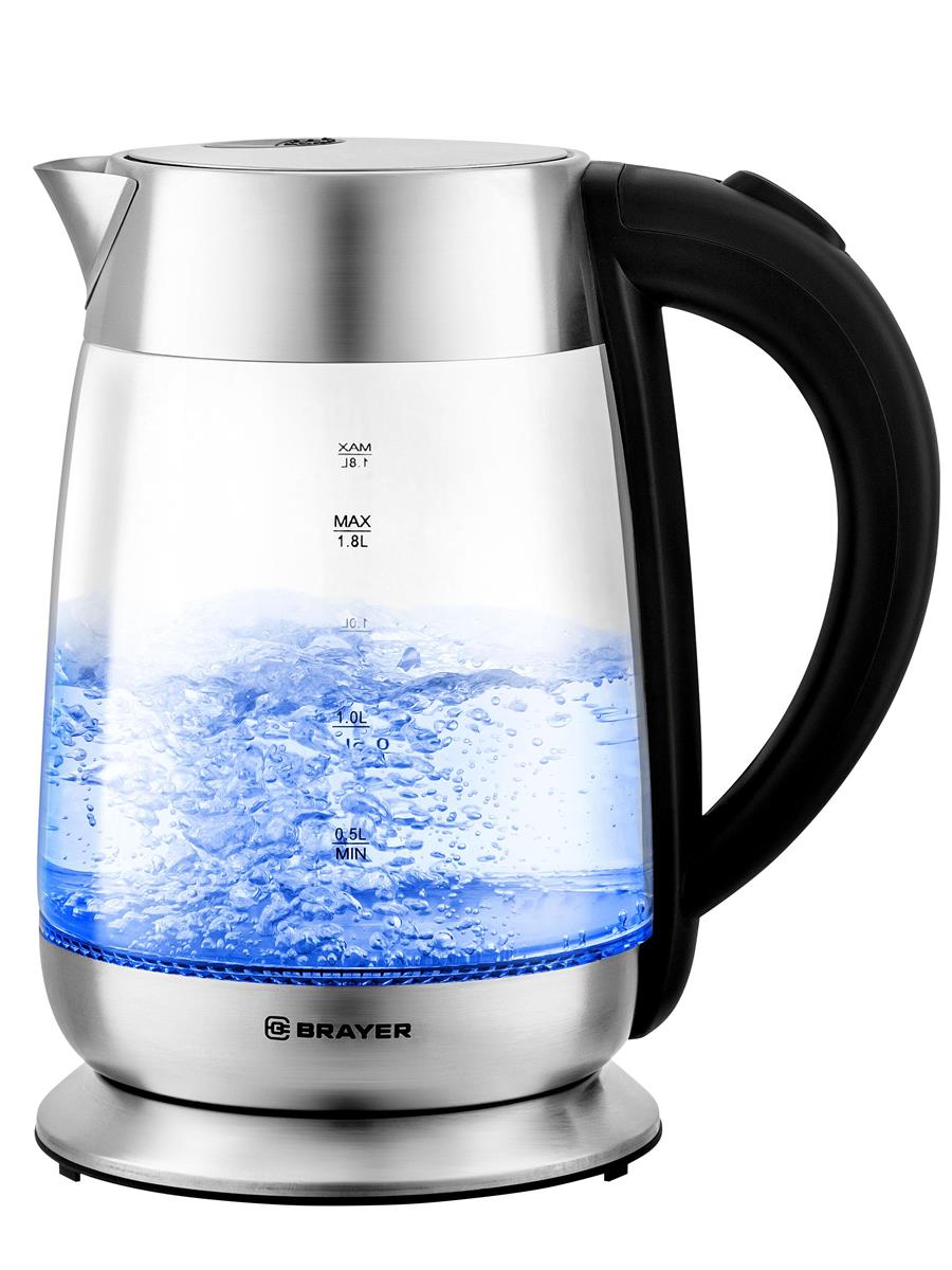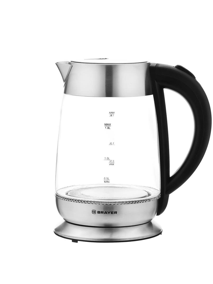 Электрический чайник Brayer BR6114 (2200 Вт/1,8 л /стекло/прозрачный, черный, серебристый) - Интернет-магазин ОЛИМП: бытовая техника, электроника, товары для дома и др.