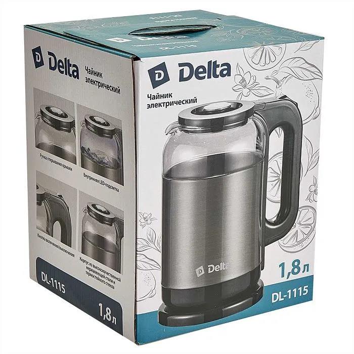Электрический чайник DELTA DL-1115 (1500 Вт/1,8 л /стекло, пластик/серый, прозрачный) - Интернет-магазин ОЛИМП: бытовая техника, электроника, товары для дома и др.