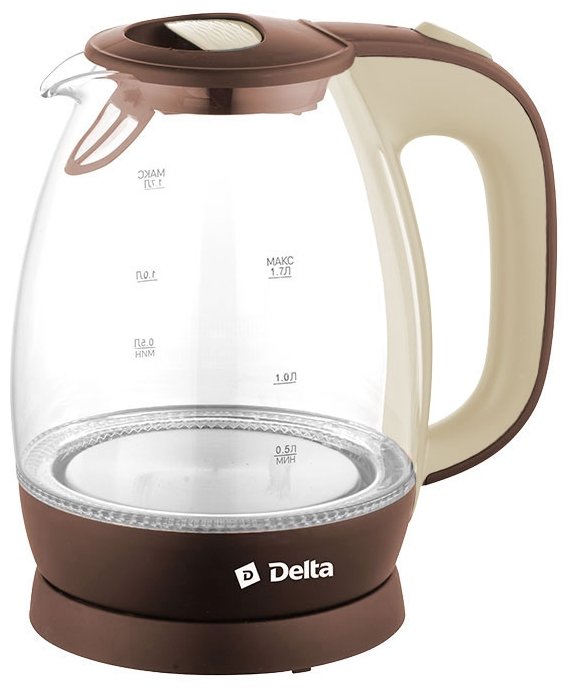 Электрочайник Delta DL-1203 станет хорошим приобретением для каждого, поскольку он сочетает в себе большую мощность, прочность и выглядить очень привлекательно. Выполнен прибор в коричневом корпусе, изготовленном из пластика и термостойкого стекла. В носике имеется фильтр, не допускающий попадания в чашку накипи. Кнопка включения устройства размещена на ручке, что обеспечивает комфортное пользование. Объем чайника Delta DL-1203 составляет 1.7 л, что позволит за один раз вскипятить столько воды, чтобы удовлетворить потребность в чае всей семьи. Прибор мощностью 2200 Вт предусматривает закрытый нагревательный элемент из стали. На корпус нанесена шкала уровня воды, что позволяет отследить количество воды, которая осталась внутри прибора. Модель имеет защиту от перегрева, а также оснащен защитой от включения без воды, что способствует безопасной эксплуатации чайника. Для хранения шнура в корпусе устройства имеется специальный отсек.