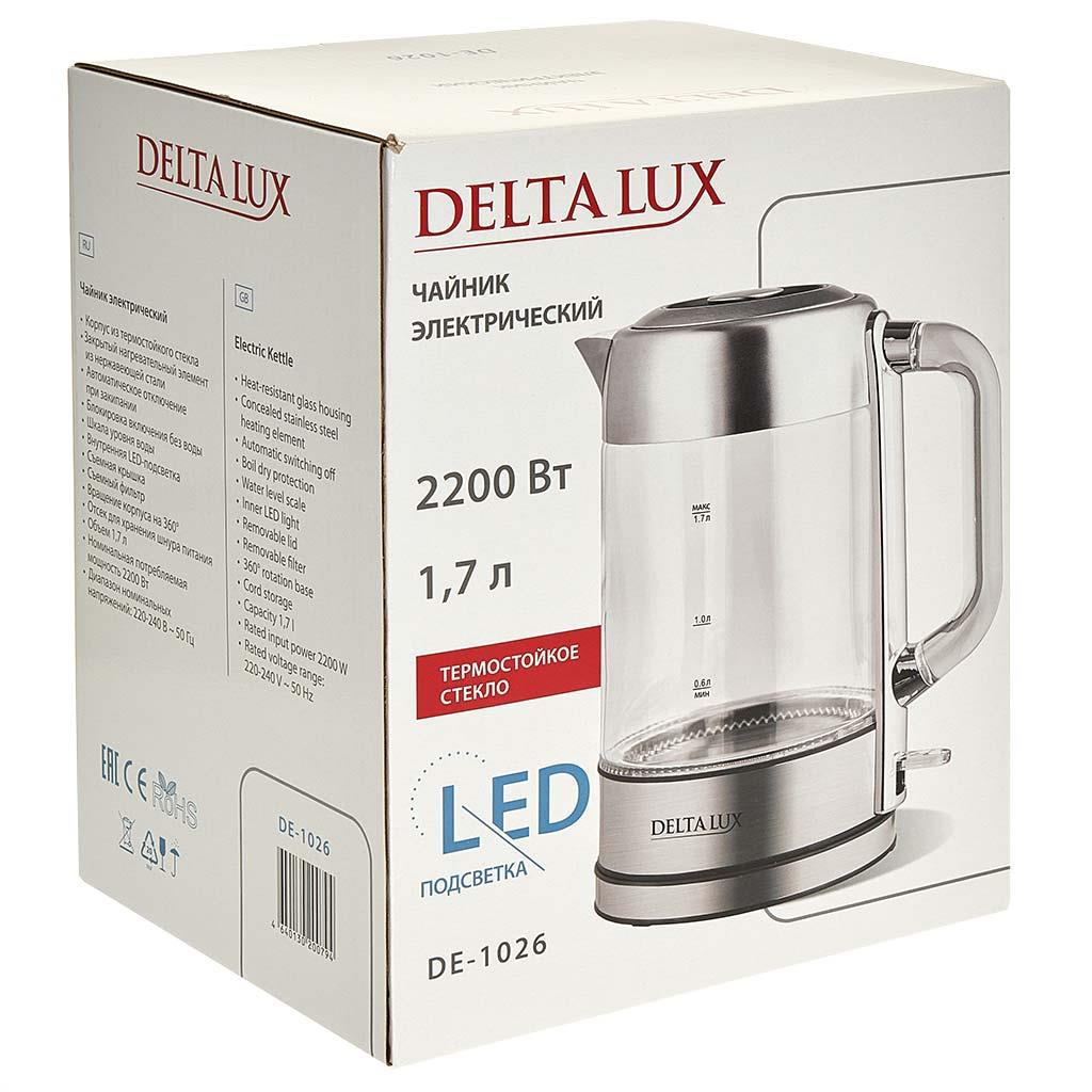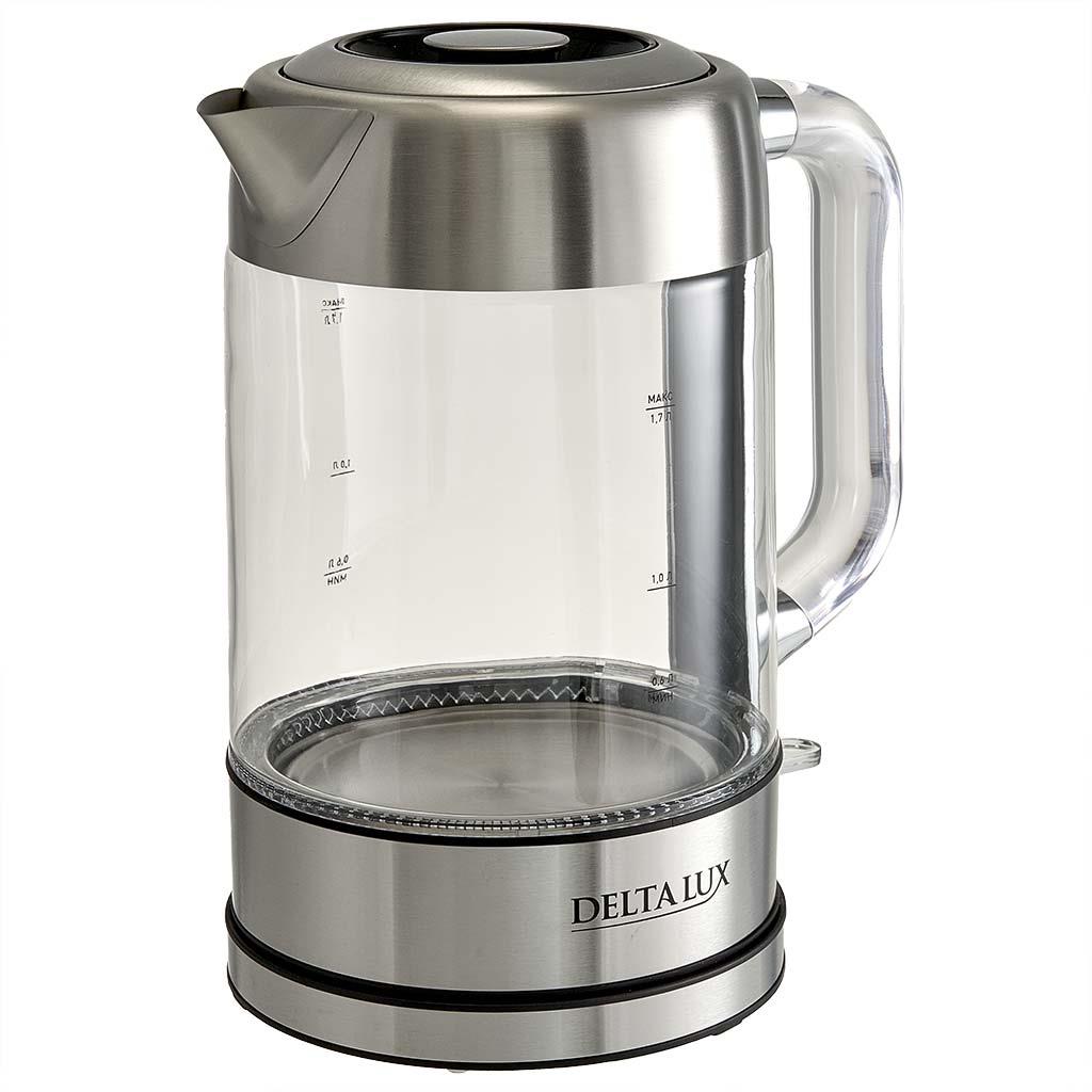 Электрический чайник DELTA LUX DE-1026 (2200 Вт/1,7 л /стекло/сталь, прозрачный)