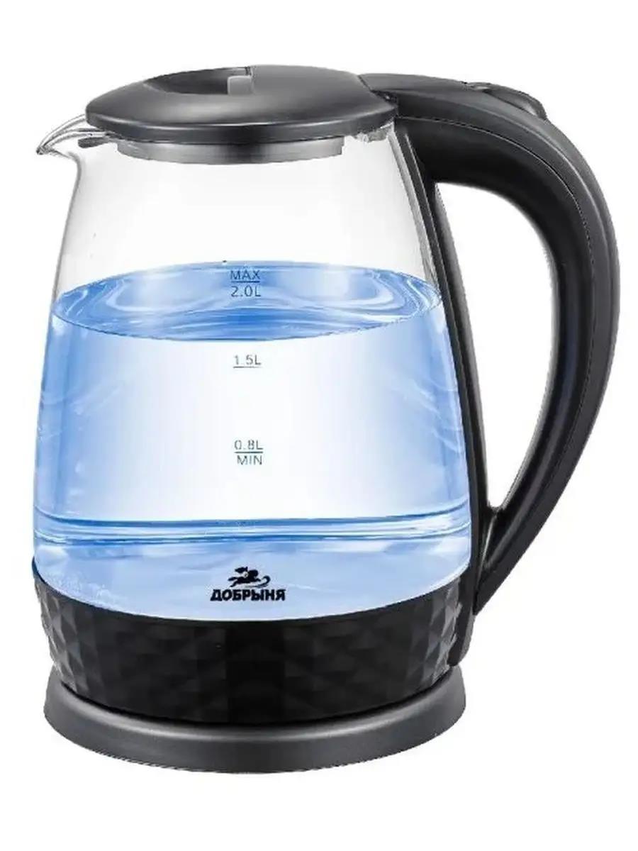 Электрический чайник Добрыня DO-1252 (1800 Вт/1,8 л /стекло/прозрачный, черный) - Интернет-магазин ОЛИМП: бытовая техника, электроника, товары для дома и др.