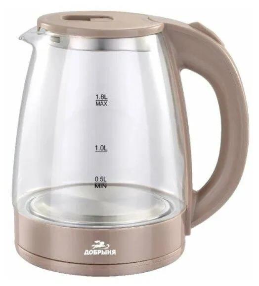 Электрический чайник Добрыня DO-1254B (1800 Вт/1,8 л /стекло, пластик/бежевый, прозрачный)