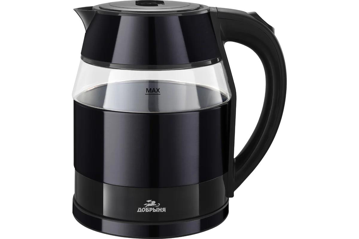 Электрический чайник Добрыня DO-1267D (1800 Вт/1,8 л /стекло, нержавеющая сталь/прозрачный, черный) - Интернет-магазин ОЛИМП: бытовая техника, электроника, товары для дома и др.