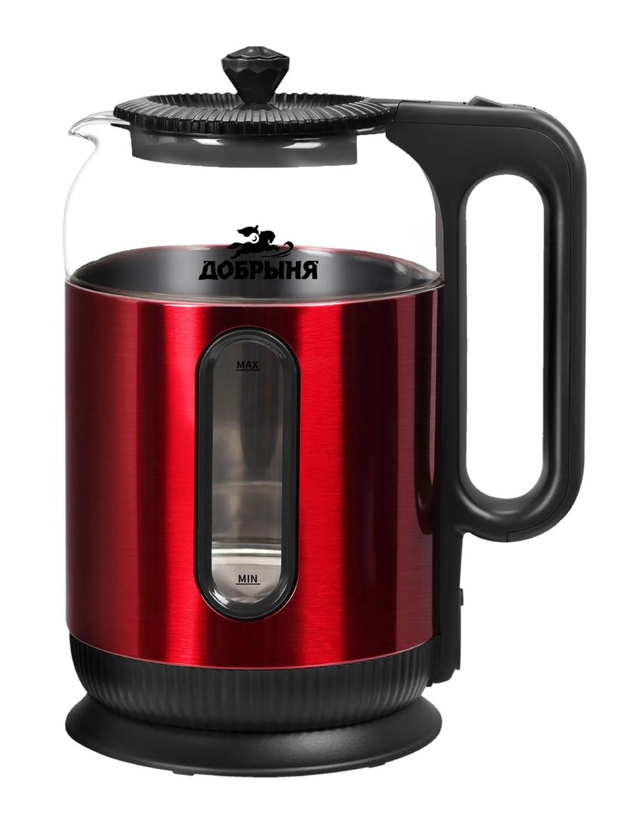 Электрический чайник Добрыня DO-1270R (1500 Вт/1,6 л /стекло, металл/красный, прозрачный) - Интернет-магазин ОЛИМП: бытовая техника, электроника, товары для дома и др.
