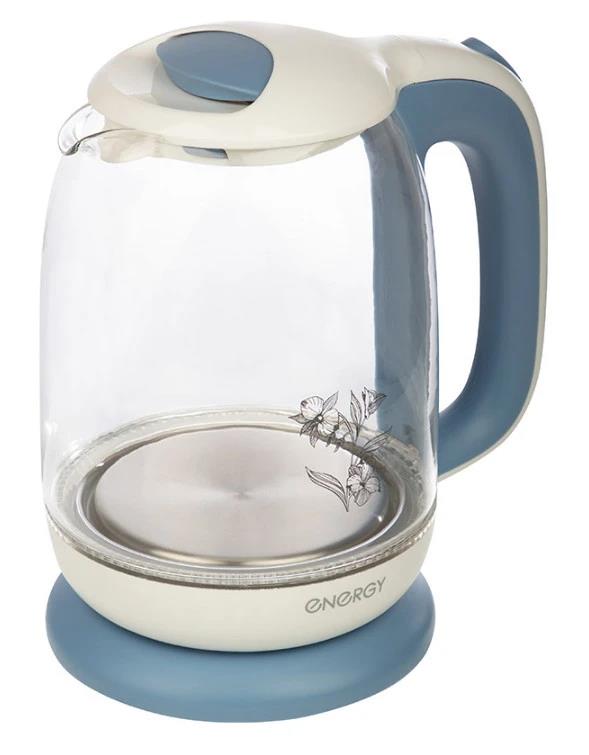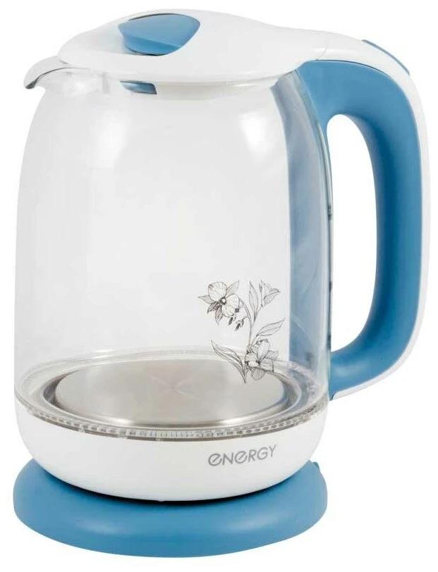 Электрический чайник Energy E-281 (2200 Вт/1,7 л /стекло, пластик/голубой, белый)
