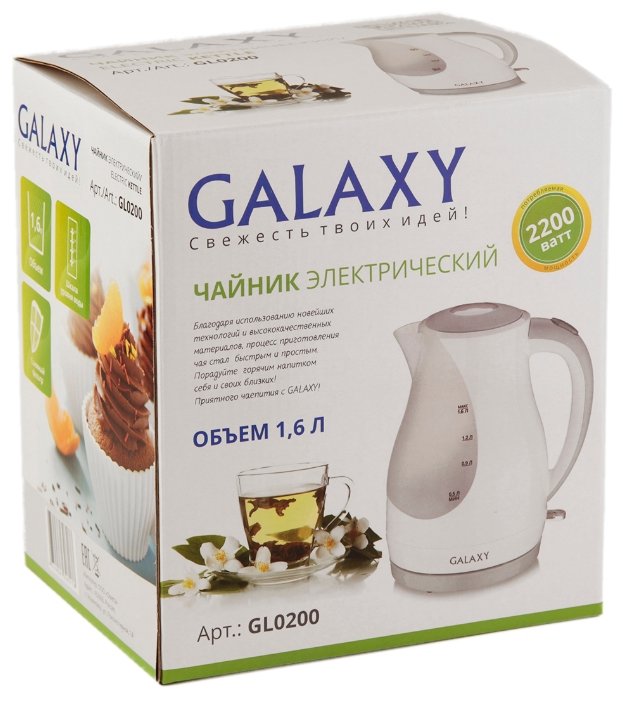 Электрический чайник Galaxy GL0200 (2200 Вт/1,6 л /пластик/серый, белый)