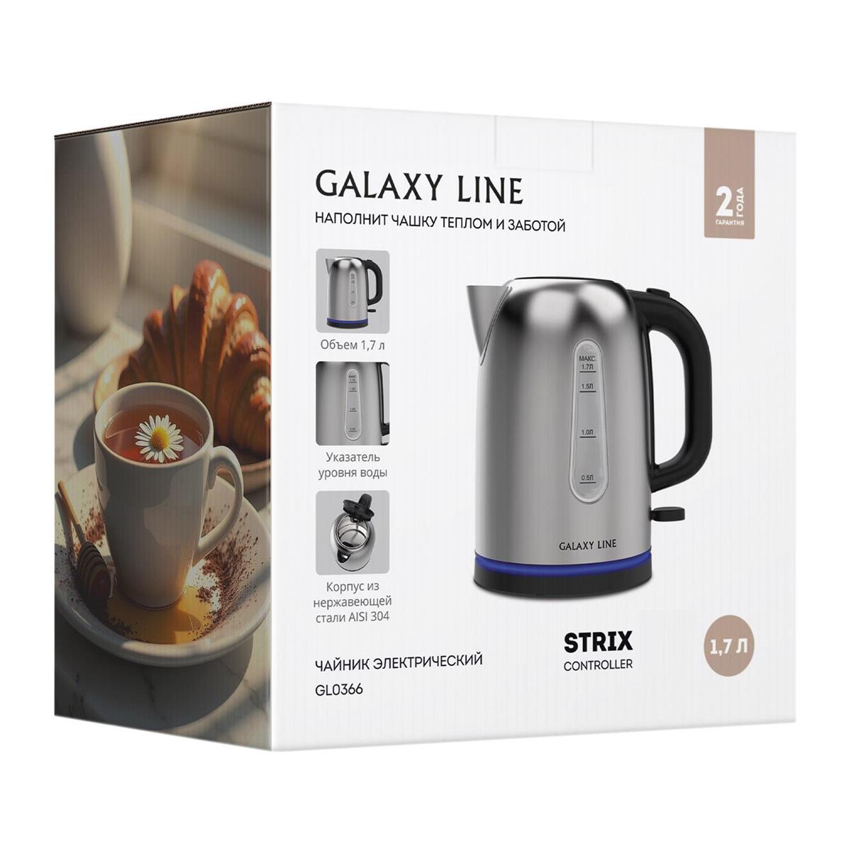 Электрический чайник GALAXY LINE GL 0366 (2200 Вт/1,7 л /нержавеющая сталь/черный, серебристый)