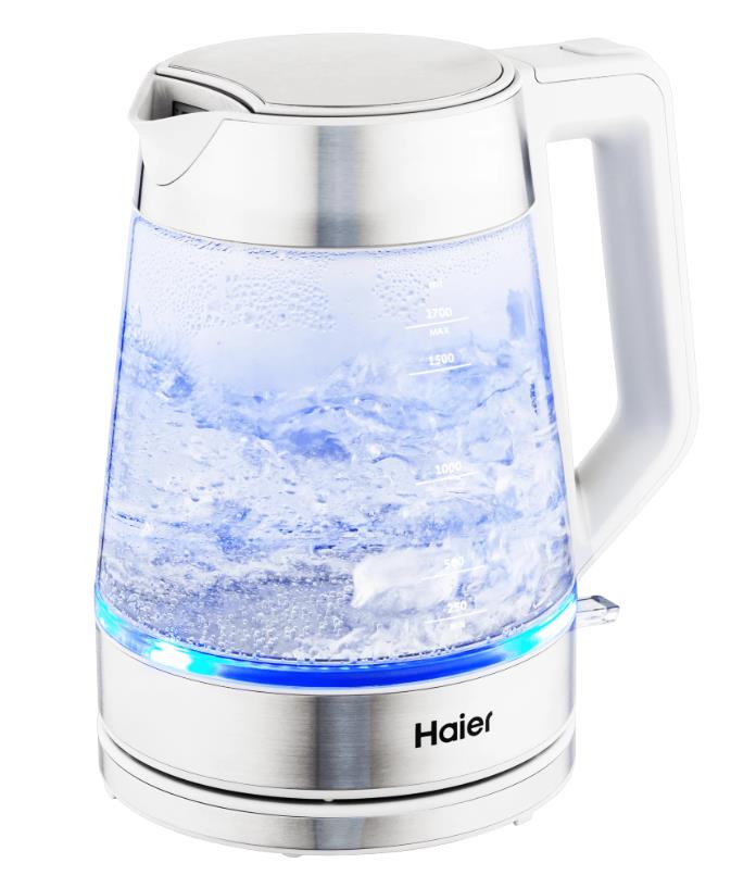 Электрический чайник Haier HK-500 (2200 Вт/1,7 л /стекло/прозрачный, белый, серебристый) - Интернет-магазин ОЛИМП: бытовая техника, электроника, товары для дома и др.