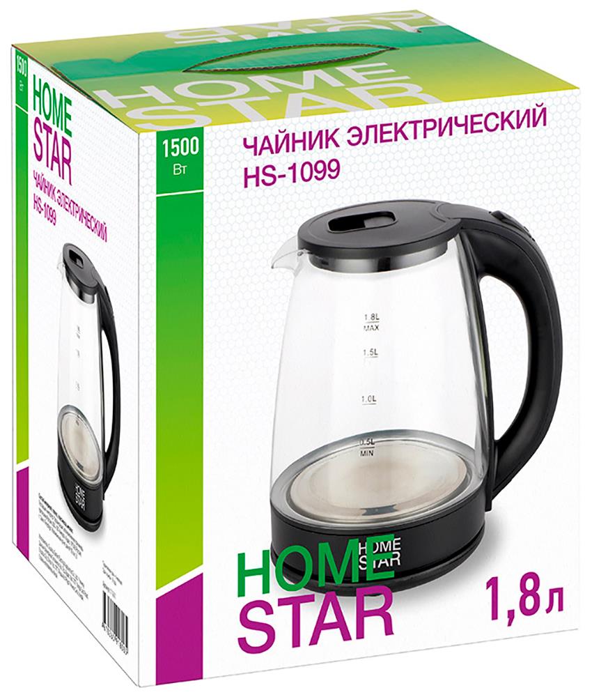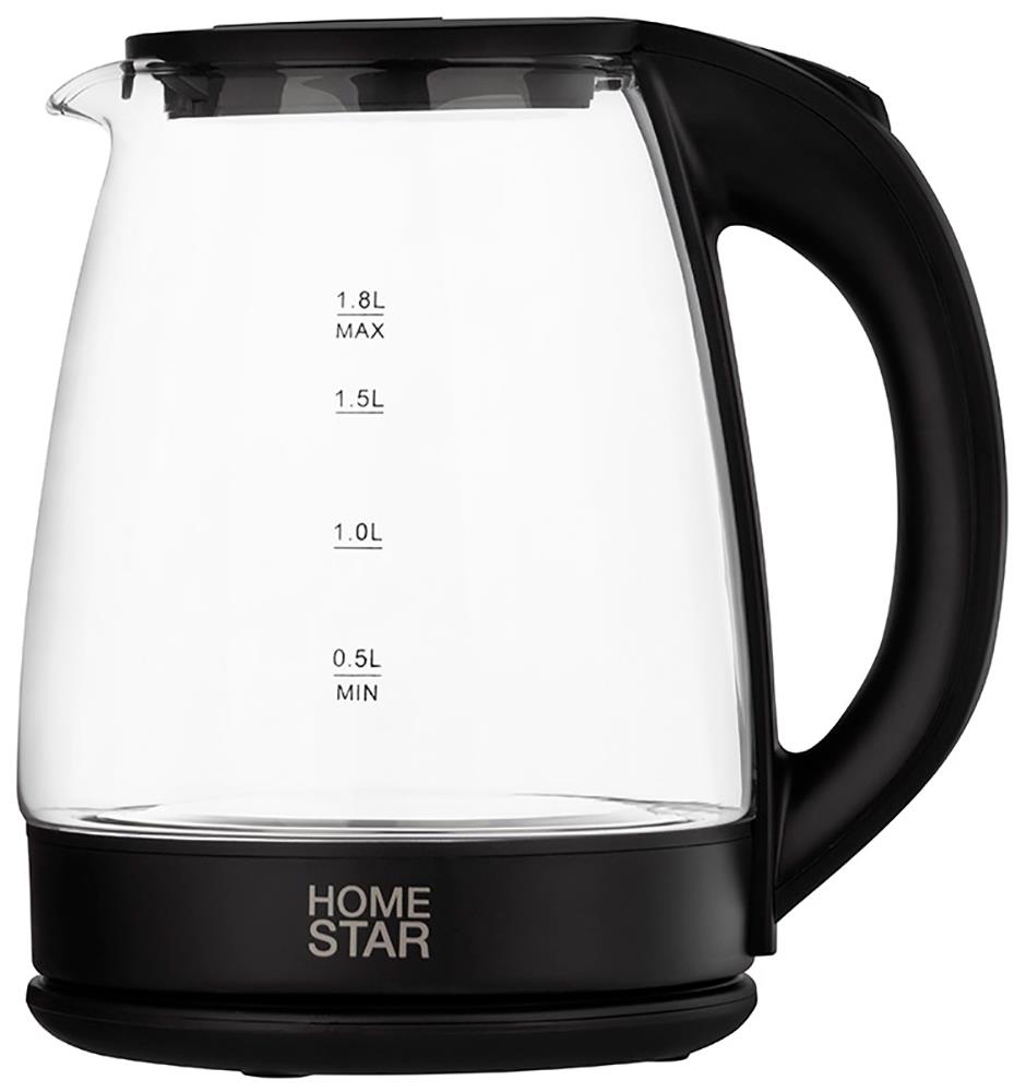 Электрический чайник HOMESTAR HS-1099 (1,8 л. стекло) (111611) (1500 Вт/1,8 л /стекло/прозрачный, черный) - Интернет-магазин ОЛИМП: бытовая техника, электроника, товары для дома и др.