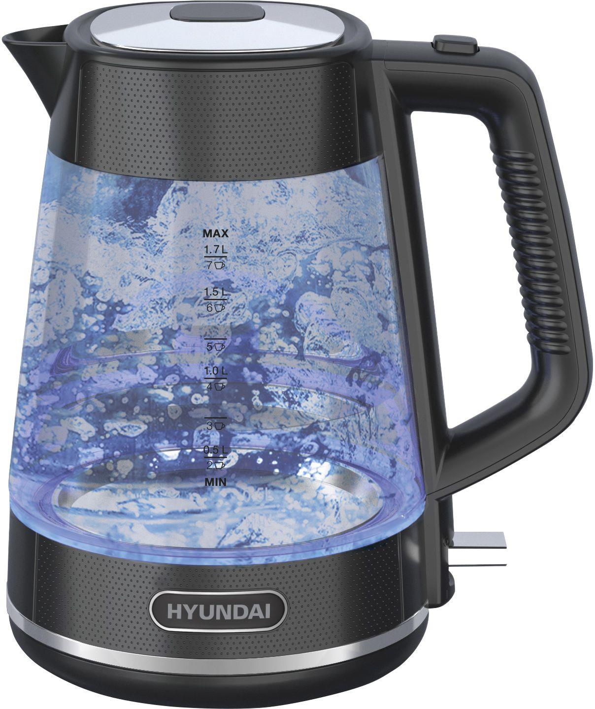 Электрический чайник Hyundai HYK-G3503 (2200 Вт/1,7 л /стекло, пластик/черный, серебристый) - Интернет-магазин ОЛИМП: бытовая техника, электроника, товары для дома и др.