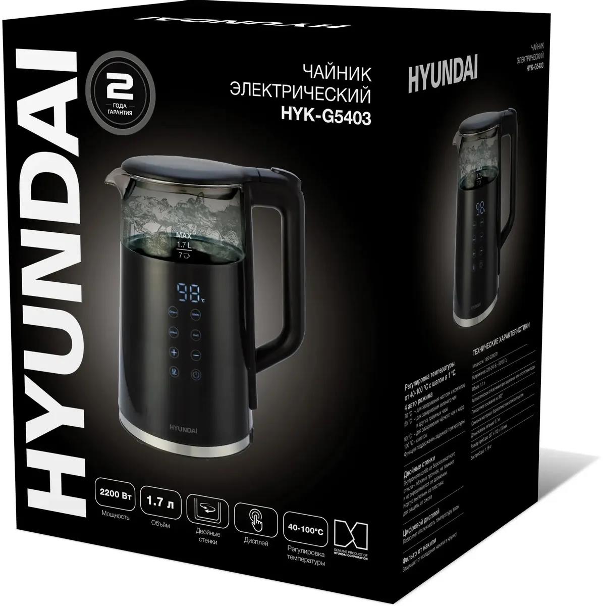 Электрический чайник Hyundai HYK-G5403 (2200 Вт/1,7 л /стекло/прозрачный, черный)