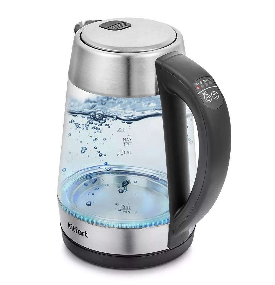 Электрический чайник Kitfort КТ-6107 (2000 Вт/1,7 л //прозрачный, черный, серебристый)