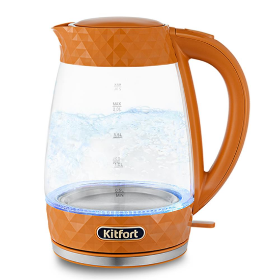 Электрический чайник Kitfort KT-6123-4 (2200 Вт/2 л /стекло/оранжевый) - Интернет-магазин ОЛИМП: бытовая техника, электроника, товары для дома и др.
