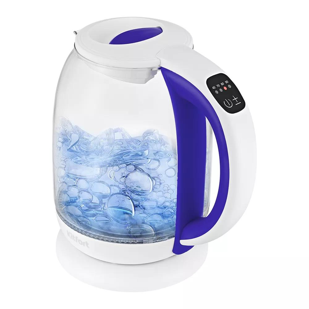 Электрический чайник Kitfort КТ-6140-1 (2200 Вт/1,7 л /стекло, пластик/белый, фиолетовый) - Интернет-магазин ОЛИМП: бытовая техника, электроника, товары для дома и др.