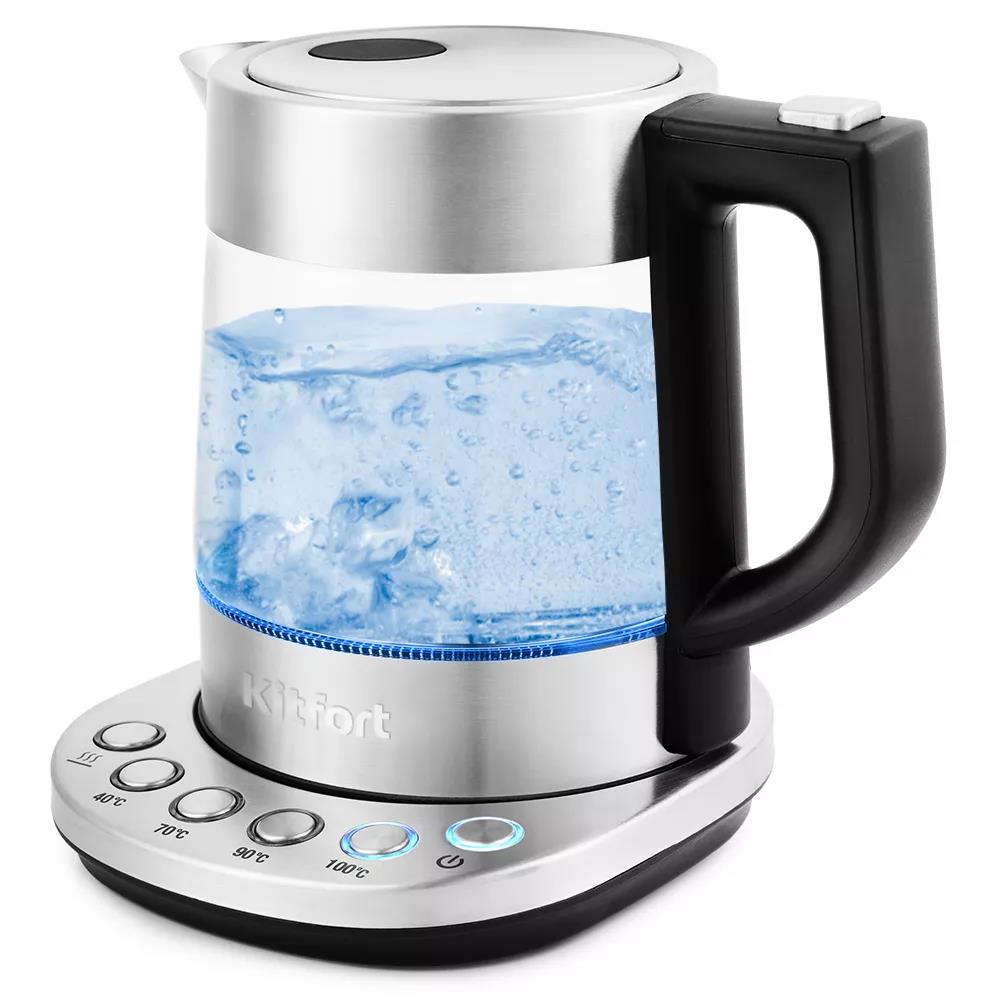 Электрический чайник с терморегулятором Kitfort КТ-648 может не только вскипятить воду, но и нагреть её до температуры 40, 70 и 90 °С, что очень удобно при заваривании различных сортов чая. Температура 40°С пригодится для приготовления детского питания.