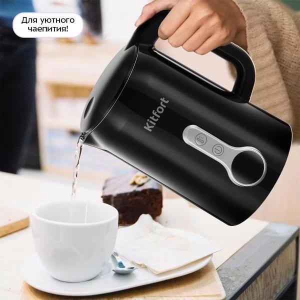 Электрический чайник Kitfort КТ-6701 (2200 Вт/1,7 л /пластик, нержавеющая сталь/черный) - Интернет-магазин ОЛИМП: бытовая техника, электроника, товары для дома и др.
