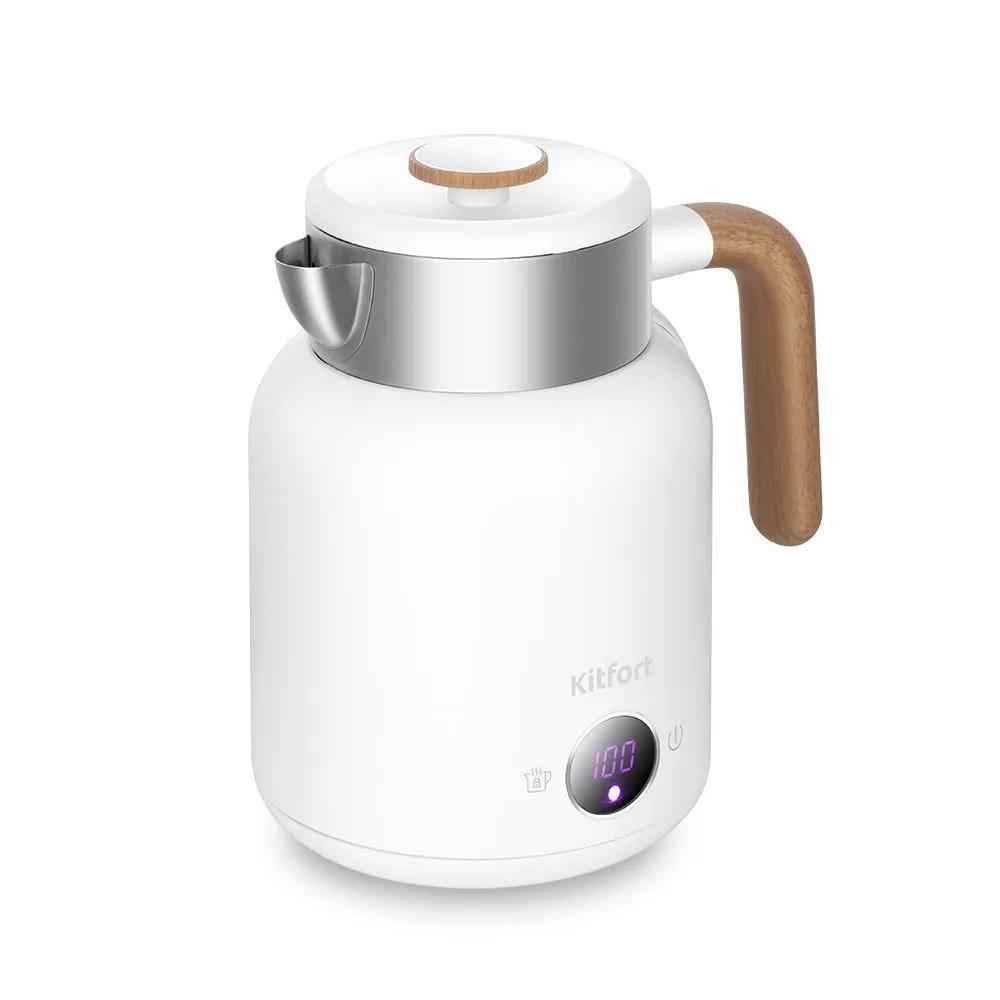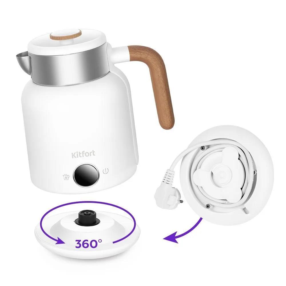 Электрический чайник Kitfort КТ-6724 (2000 Вт/1,5 л /пластик, нержавеющая сталь/белый, дерево) - Интернет-магазин ОЛИМП: бытовая техника, электроника, товары для дома и др.