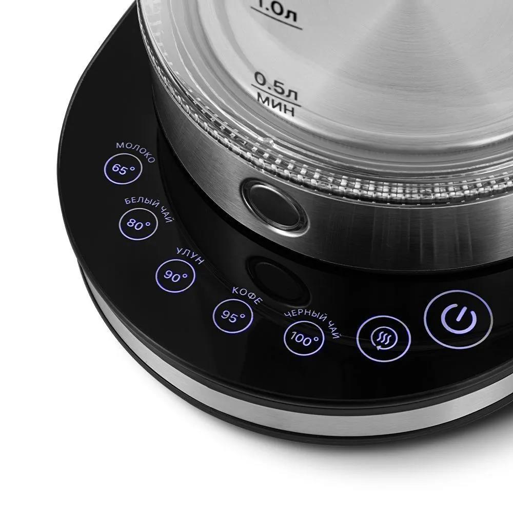Электрический чайник Kitfort КТ-6764 (1800 Вт/2,2 л /стекло, нержавеющая сталь/прозрачный, черный, серебристый)