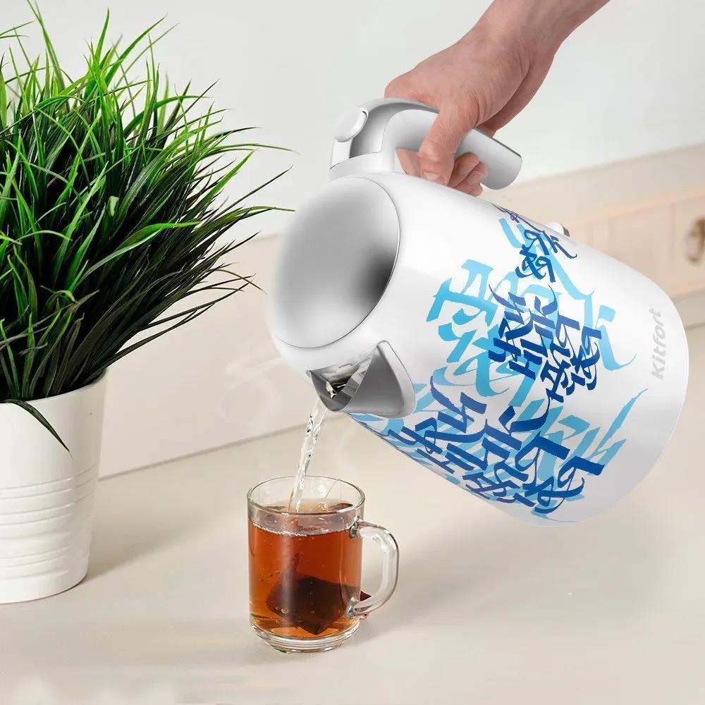 Электрический чайник Kitfort КТ-6772 (2000 Вт/1,7 л /пластик, нержавеющая сталь/синий, белый) - Интернет-магазин ОЛИМП: бытовая техника, электроника, товары для дома и др.