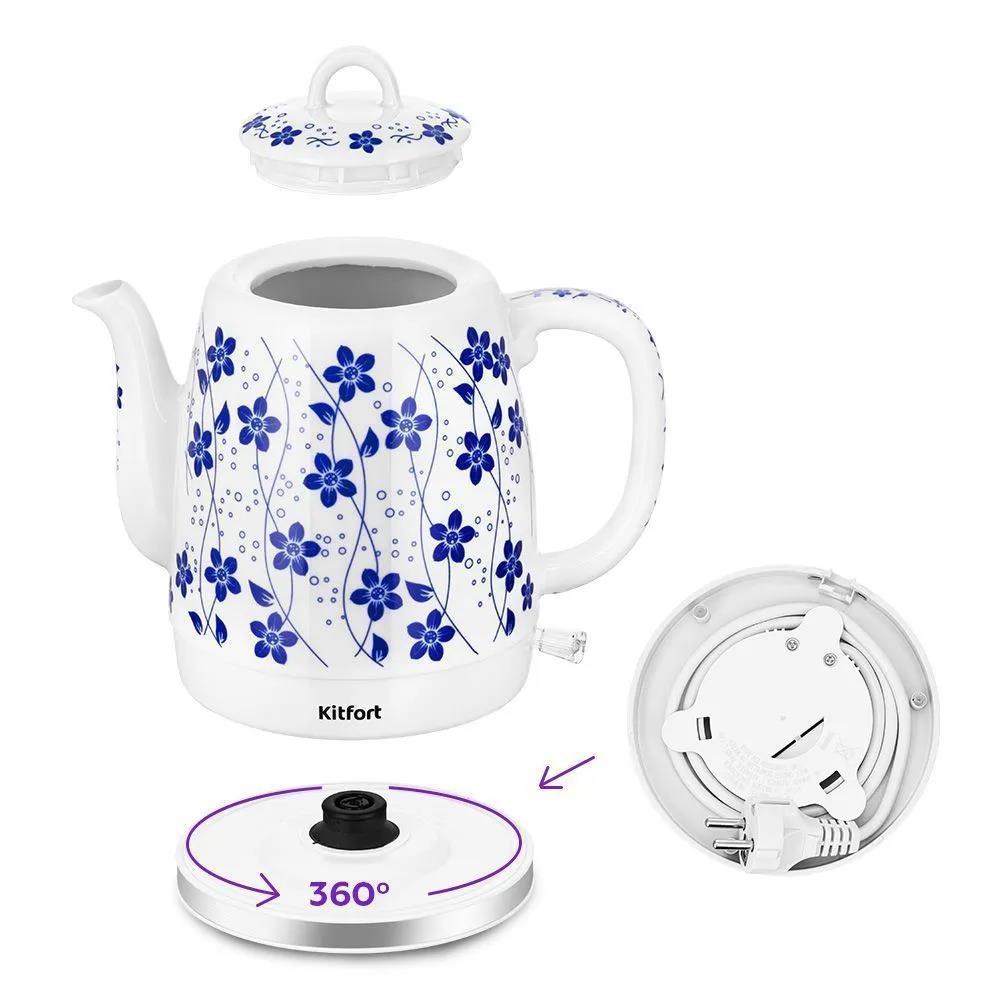 Электрический чайник Kitfort КТ-6788 1л. корпус: керамика (1500 Вт/1 л /керамика/синий, белый) - Интернет-магазин ОЛИМП: бытовая техника, электроника, товары для дома и др.